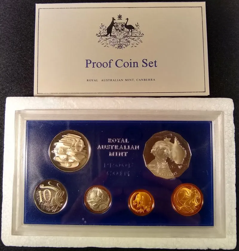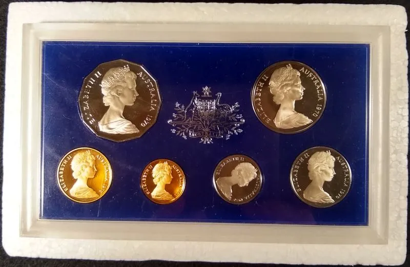The 1970 proof set consists of 6 Australian proof coin, the consists of one of each of the following denominations: one cent, two cents, five cents, ten cents, twenty cents and fifty cents.