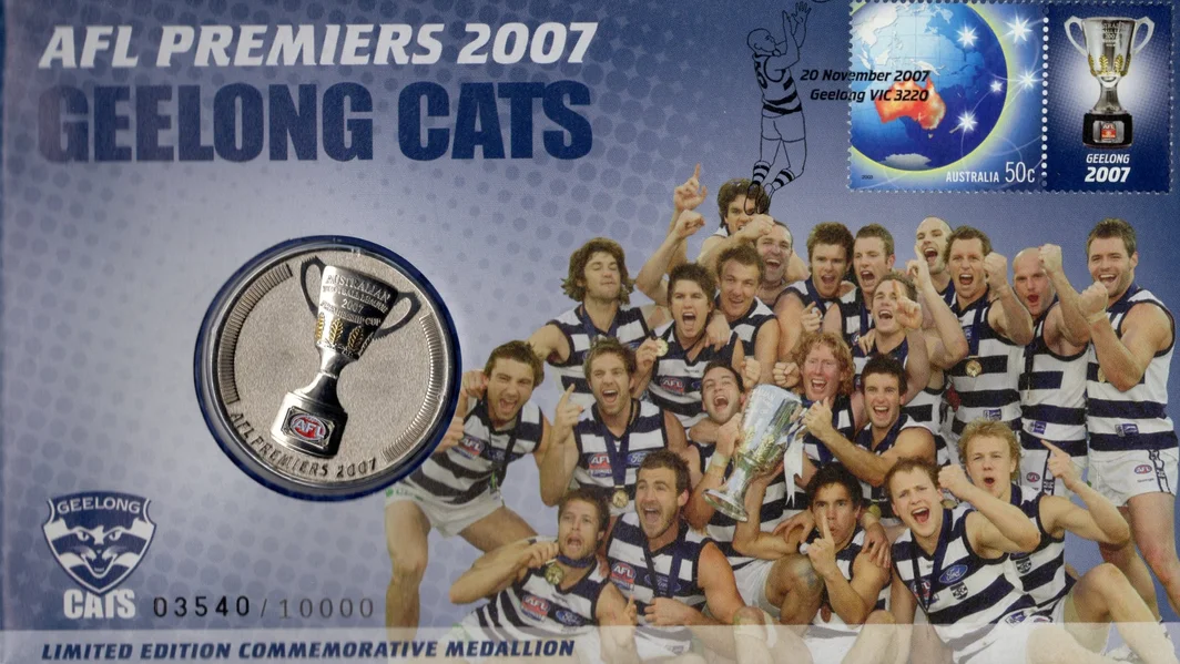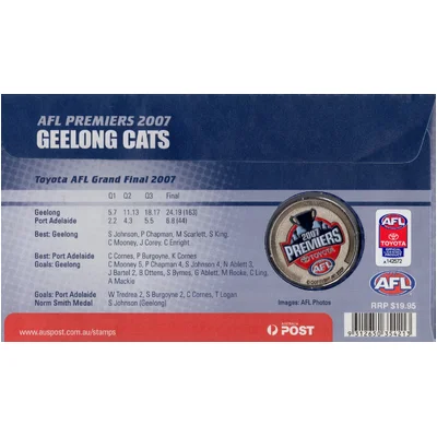 Commemorate a memorable moment in AFL history with this 2007 AFL Premiers Geelong Cats Limited Edition Medallion Cover.