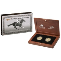 The Melbourne Cup has become such an integral part of Australian culture that it is almost impossible to imagine the country without it. Since 1861, the world's greatest 3200 metre handicap horse race has been run ever November. To commemorate the 150th running of 'the race that stops a nation', the Royal Australian Mint has produced two stunning selectively gold plated silver proof 50c coins. An exclusive collectors set never to be repeated.