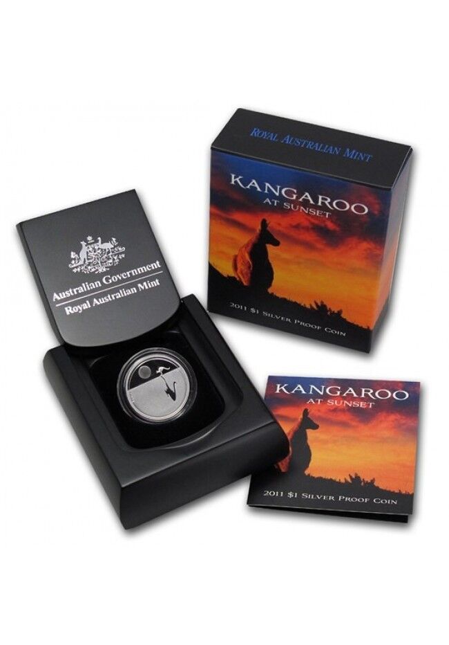 The 2011 $1 Kangaroo at Sunset Silver Proof Coin continues one of the Royal Australian Mint’s most admired contemporary design themes. First introduced as part of a limited collector series, the Kangaroo at Sunset motif has become a recognised modern classic in Australian numismatics. The coin features a lone kangaroo bounding across open desert plains, framed by the glow of a setting sun—a simple yet striking representation of Australia’s landscape and wildlife.