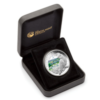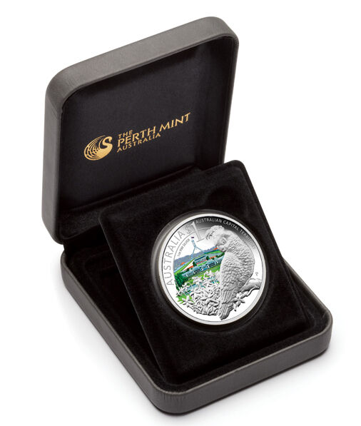 This 2010 Celebrate Australia Australian Capital Territory 1oz Coloured Silver Proof Coin was specially released for the ANDA Canberra Coin Show (6–7 November 2010) by The Perth Mint. Crafted from 1oz of pure silver (99.9%), the coin features a vibrant coloured design showcasing Australia’s iconic Parliament House. Surrounding the building are the faunal and floral emblems of the Australian Capital Territory: the Gang-gang Cockatoo and the Royal Bluebell.