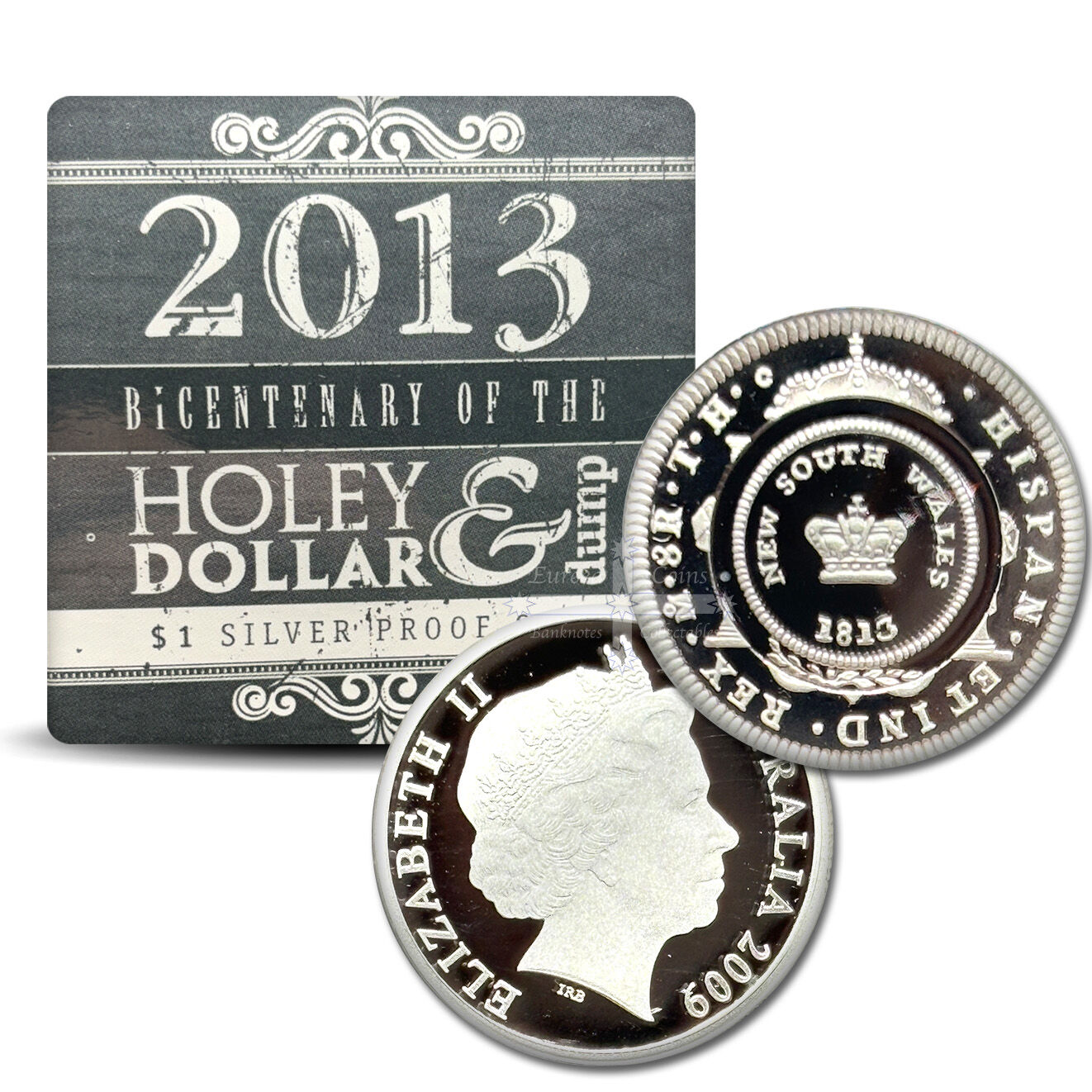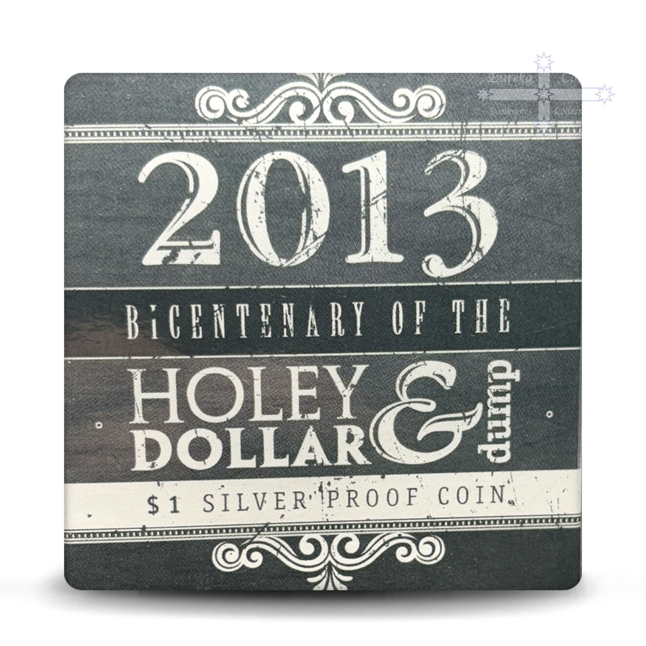 This $1 Silver Proof coin series commemorates the 2013 $1 Bicentenary of the Holey Dollar & Dump.