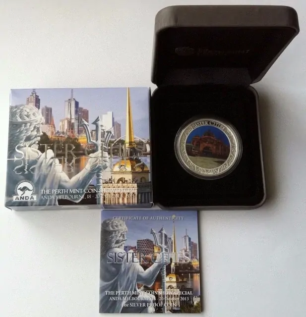 Issued as a special release at the 2013 Melbourne International Coin & Banknote Show, the Perth Mint’s Sister Cities 1oz Silver Proof Lenticular Coin celebrates the enduring partnership between Melbourne, Australia, and St Petersburg, Russia.