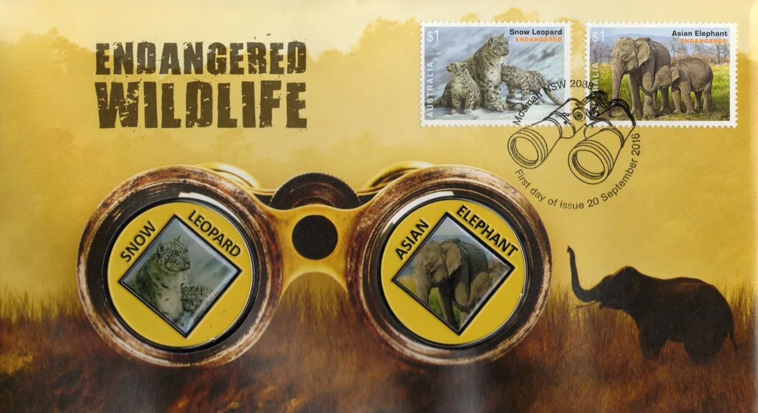 2016 Endangered Wildlife - Snow Leopard & Asian Elephant Medallion PMC $19.95