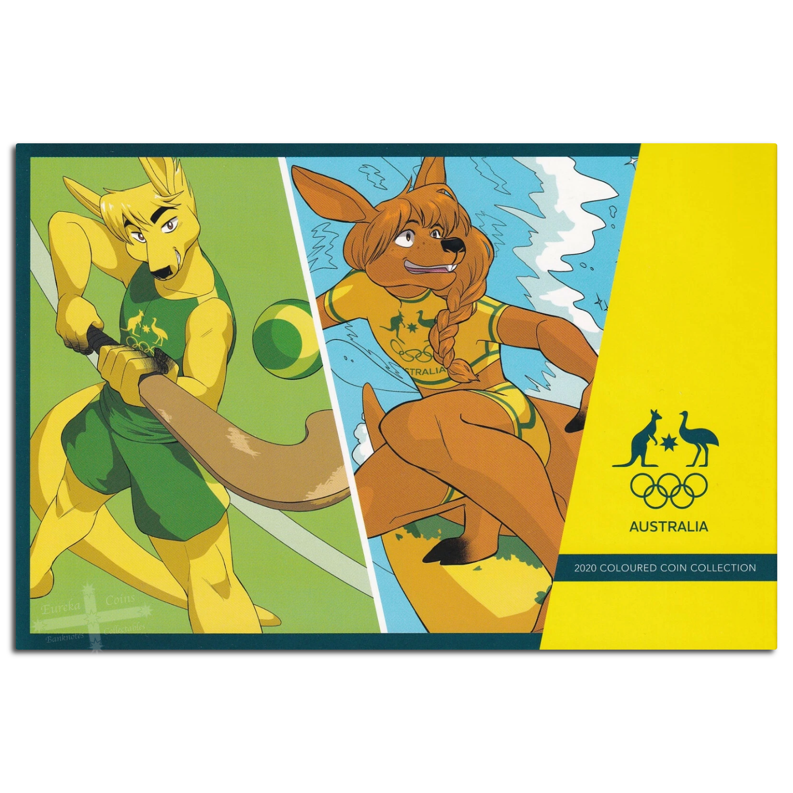 Designs include a manga style Hockey Roo and Surfing Roo, Mount Fuji, the Australian Olympic symbol, and an Olympic Torch. The coins are presented in specially designed manga-themed folders.