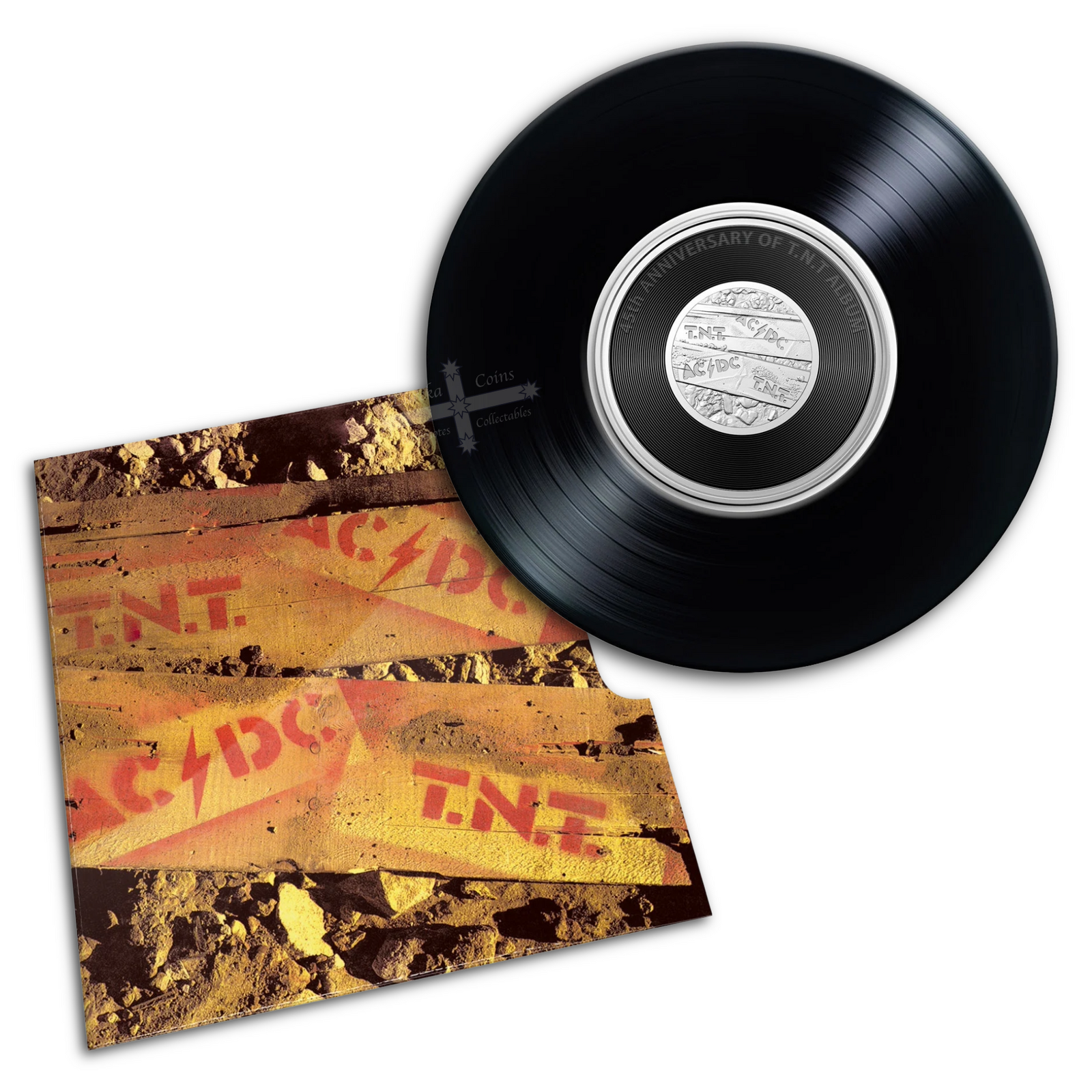 Each uncirculated coin is encased in a vinyl disc shaped card within a sleeve reproduction of each album's cover art.