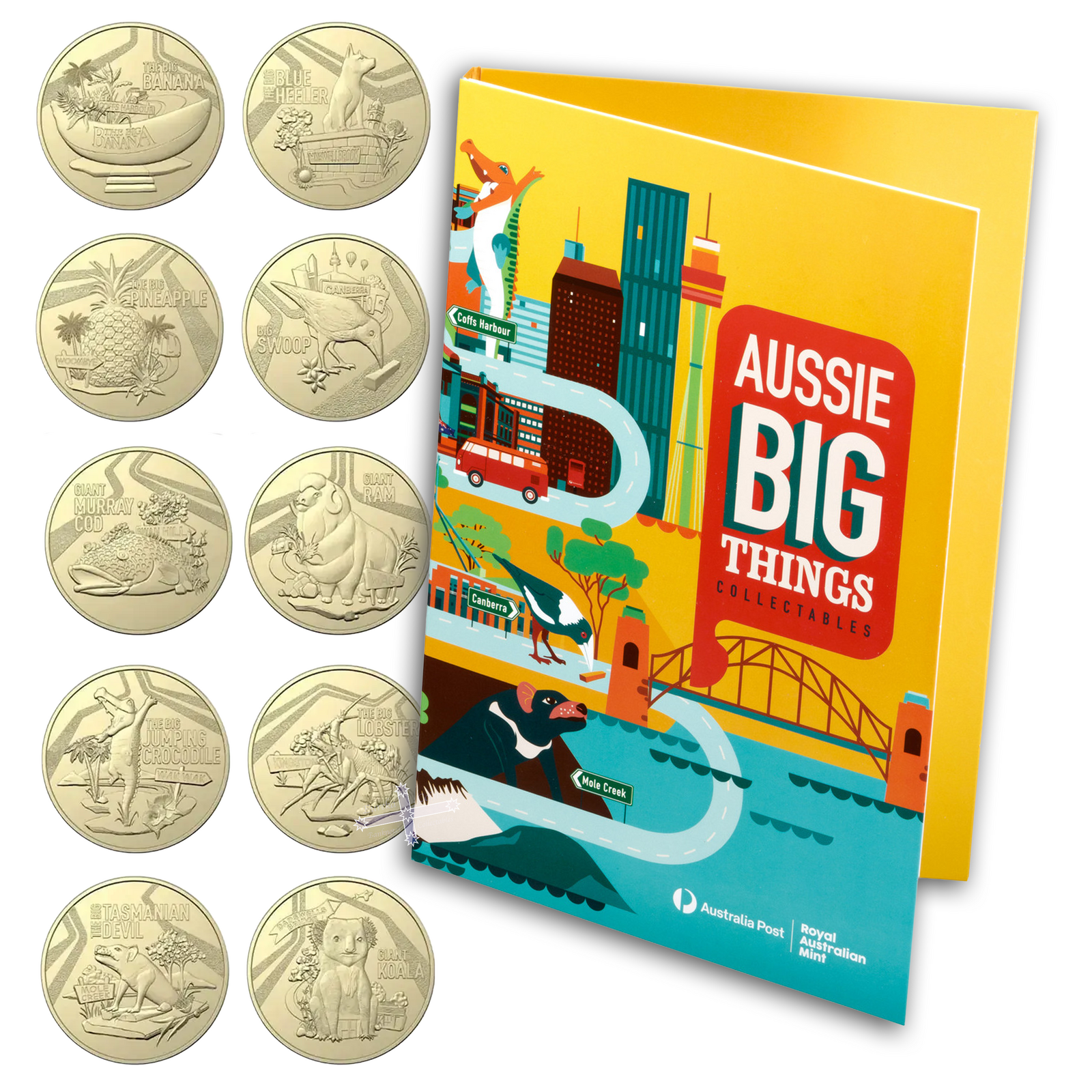 The 2023 Ten-Coin Proof Set, titled “Aussie Big Things,” celebrates Australia’s iconic oversized landmarks found across the country. Each coin in this set features a different “Big Thing,” from the Big Banana to the Big Pineapple, rendered with intricate detail.
