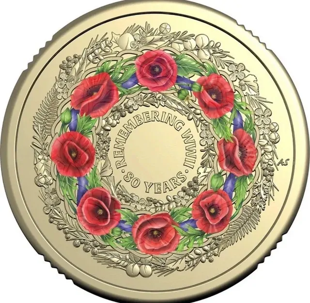 In honour of the courageous Australians who served in the Second World War, the Royal Australian Mint presents these coins. The coins features a wreath of red poppies – an enduring symbol of remembrance in Australia and other Commonwealth nations. Surrounded by sculpted leaves, the eight poppies in the wreath represent the eight decades that have passed since the most devastating war in human history.