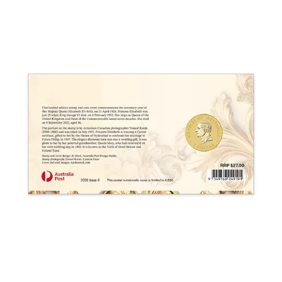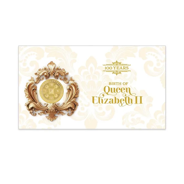 This Postal Numismatic Cover is highly collectable, featuring a pictorial envelope from the 100 Years of Queen Elizabeth's Birth stamp issue.