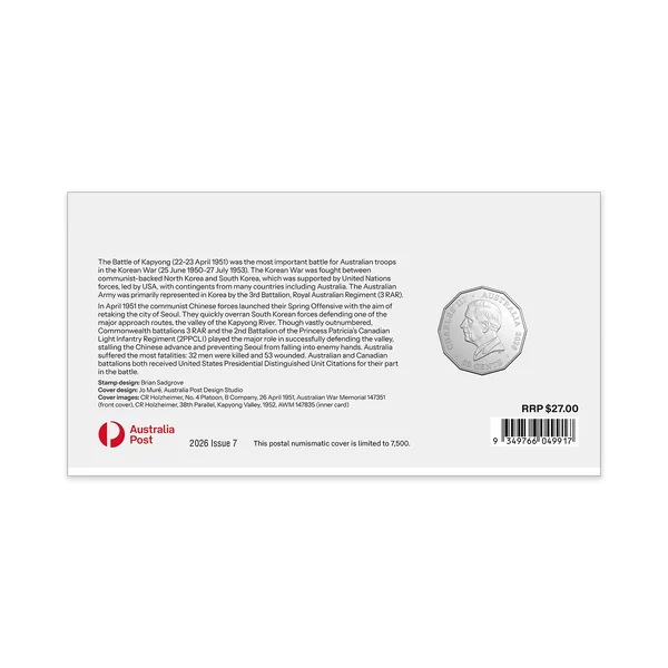 2026 50c Preparing for Peace - Battle Kapyong PNC $35.00