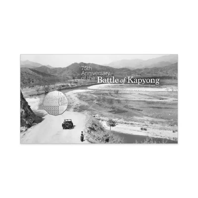 This Postal Numismatic Cover is highly collectable, featuring a pictorial envelope and stamp reprint from 2000 Korean War stamp issue affixed to the cover, commemorating the 75th Anniversary of Battle of Kapyong.