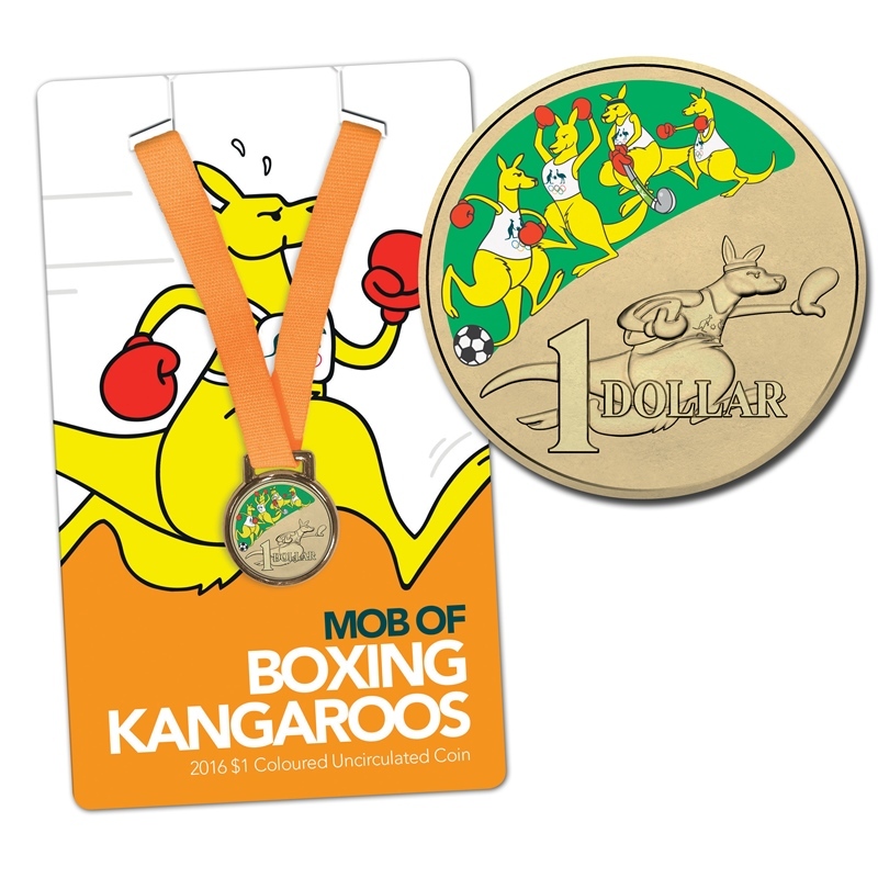 As part of the Royal Australian Mint 2016 Australian Olympic Team Coin Program, the patriotic äóÖmob of boxing kangaroosäó» will represent in a way we havenäó»t seen them before. Packaged in a bezel with ribbon attached and available on three different Coin Program ambassador cards, these coins can be worn with pride like a special Olympic medal.