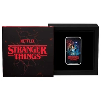 Struck from 1oz of 99.99% pure silver, this rectangular coin celebrates the iconic Season 1 poster of Stranger Things—a standout collectable for devoted fans of the hit series.